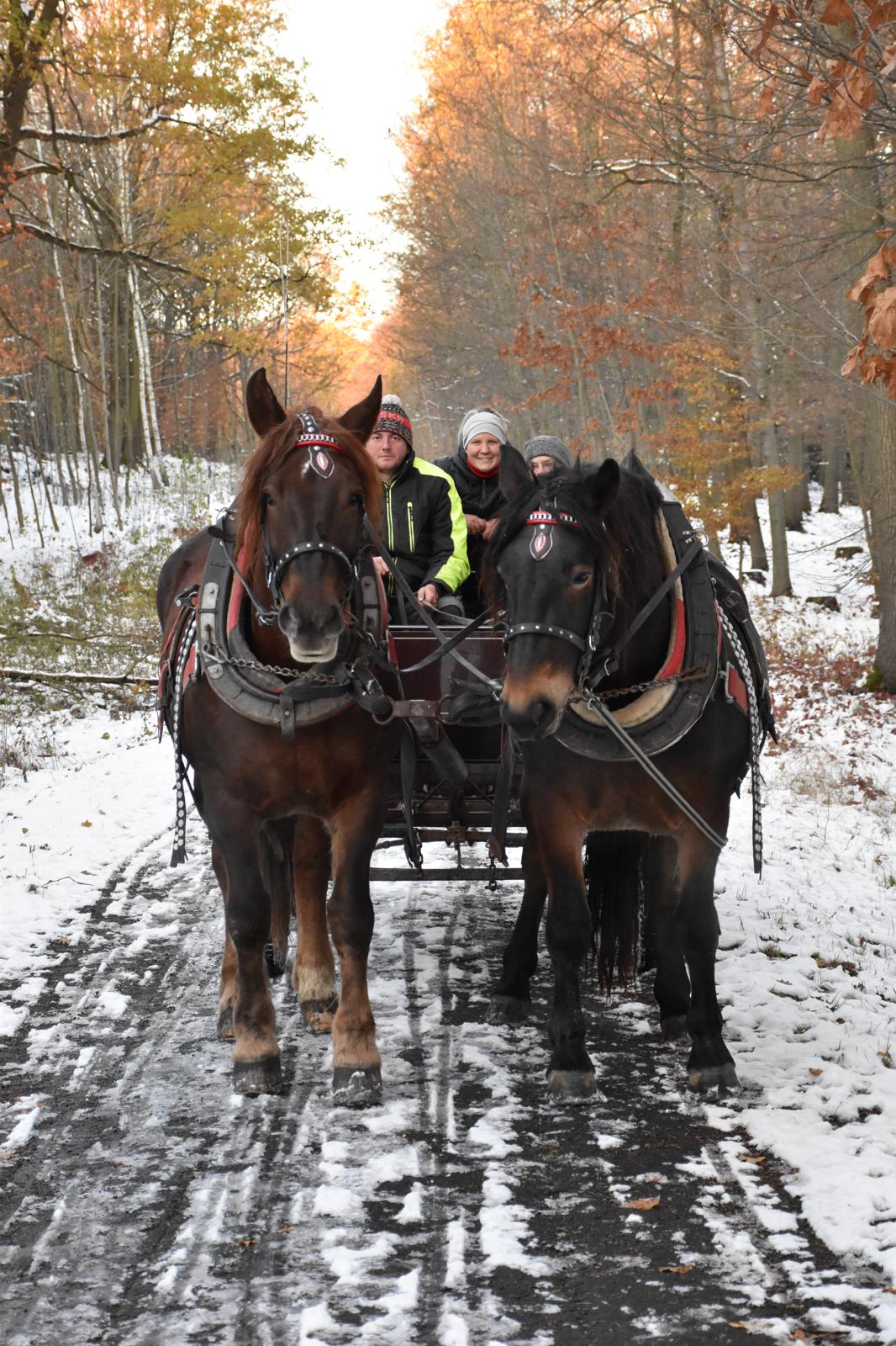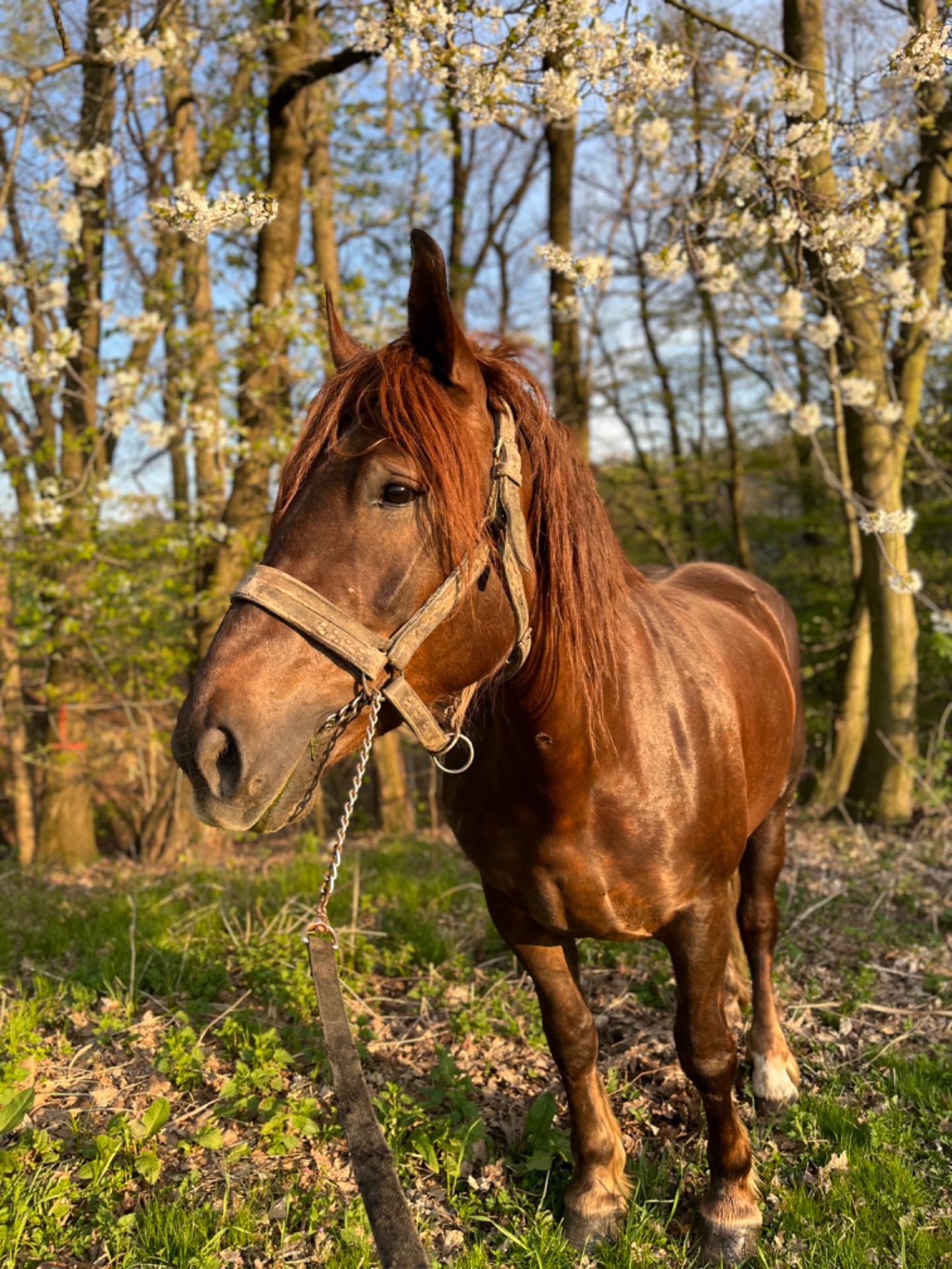 Nacho se postupně zaučuje nejen práci v lese, ale také pod sedlem. Je to ještě puberťák, proto umí holky pod sedlem občas potrápit, ale jinak je moc šikovný,