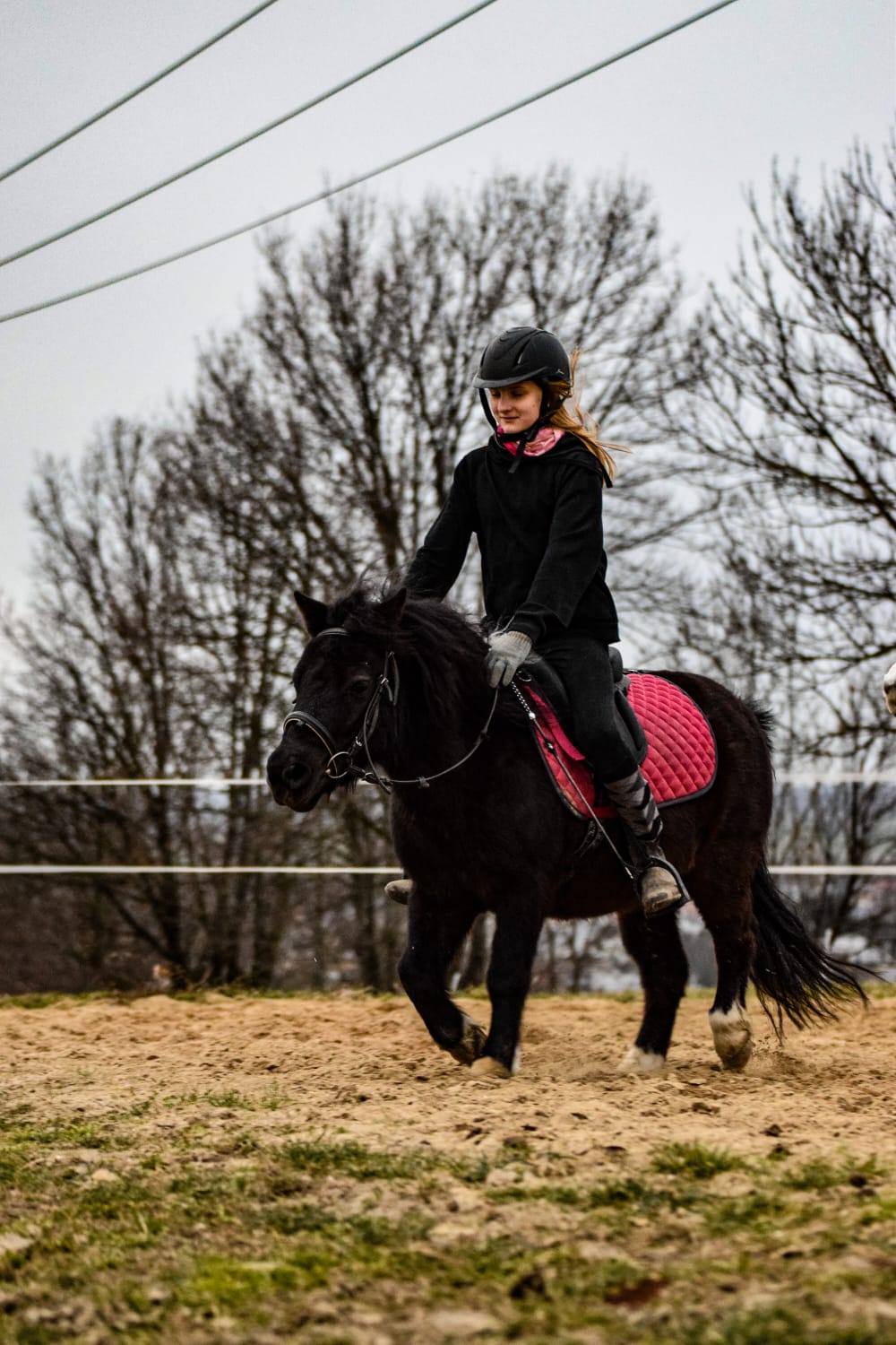 Nessinka je hodná, klidná kobylka, ale také si umí pořádně vyhodit z kopýtka a postavit hlavu. I přes to je velkým miláčkem především holek co k nám chodí jezdit.